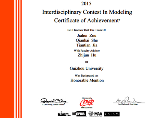 我校学子在2015年美国大学生数学建模竞赛中获国际二等奖