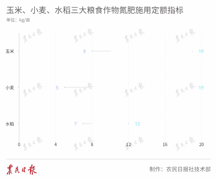目前,农业农村部科学施肥专家指导组构建了小麦、玉米、水稻三大粮食作物氮肥施用定额指标,通俗点说,即氮肥用量合理范围。