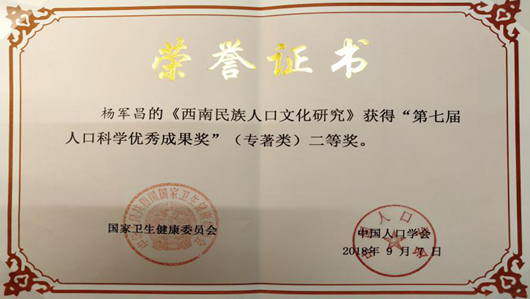 GZU Professor Yang Junchang Won the Second Prize of the Outstanding Achievement Award in Population Science of China for His Achievement in National Social Science Fund Project