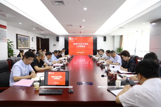 At the meeting, colleges from Philosophy and Social Sciences, Tourism and Culture Industry, History and Ethnic Culture, Management, and Fine Arts presented reports on the following: progress made in promoting tourism industrialization, integration of culture and tourism, online e-commerce sales of tourism products, and design of tourism products and small tourism commodities, as well as next phase plans for the project.