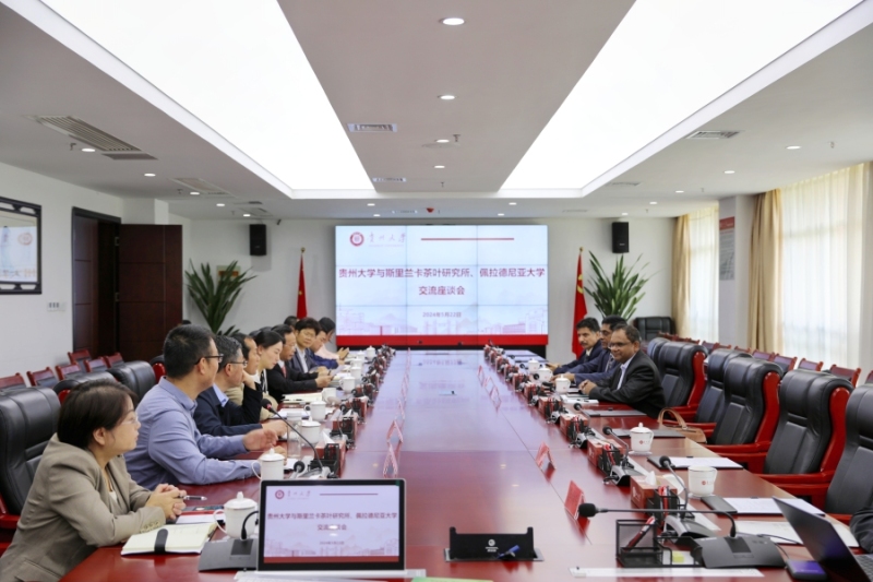 On May 21, on the occasion of International Tea Day, Dr. Keerthi Mohotti, Director of the Tea Research Institute of Sri Lanka, and Professor Sarath Kodithuwakku, Dean of the College of Agriculture at the University of Peradeniya, paid a visit to Guizhou University. The following day, a symposium was held with Zhou Shaoqi, Vice President of GZU, heads of relevant departments, and professors from the State Key Laboratory of Green Pesticides in attendance. The primary focus of the symposium was to deliberate on the establishment of a China-Sri Lanka joint laboratory focused on green pest control technologies for tea plant under the "Belt and Road" initiative. Additionally, discussions were held regarding opportunities for academic and student exchanges.
