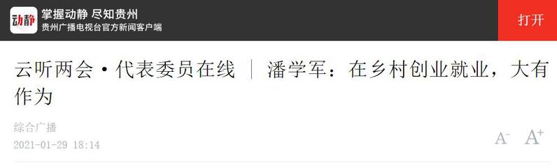 动静(贵州广播电视台官方新闻客户端):云听两会·代表委员在线 | 潘学军:在乡村创业就业,大有作为