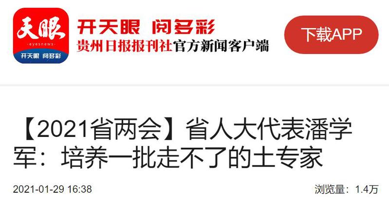天眼(贵州日报当代融媒体集团新闻客户端):【2021省两会】省人大代表潘学军:培养一批走不了的土专家