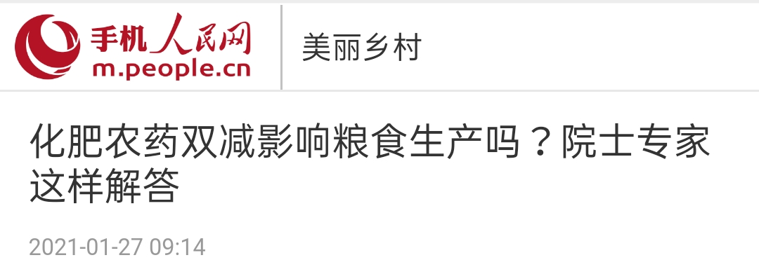 人民网:化肥农药双减影响粮食生产吗?院士专家这样解答