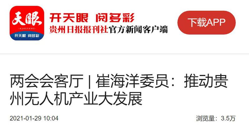 天眼(贵州日报当代融媒体集团新闻客户端):两会会客厅 | 崔海洋委员:推动贵州无人机产业大发展