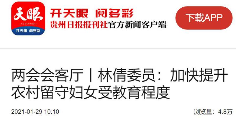 天眼(贵州日报当代融媒体集团新闻客户端):两会会客厅丨林倩委员:加快提升农村留守妇女受教育程度