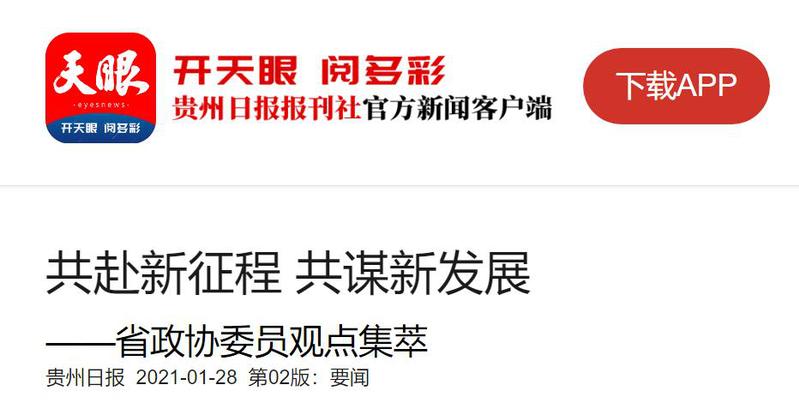天眼(贵州日报当代融媒体集团新闻客户端) :共赴新征程 共谋新发展——省政协委员观点集萃