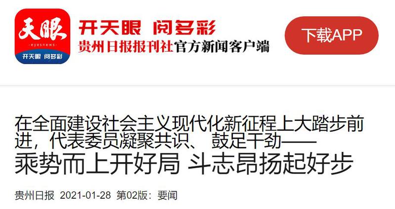 天眼(贵州日报当代融媒体集团新闻客户端):在全面建设社会主义现代化新征程上大踏步前进,代表委员凝聚共识、 鼓足干劲——乘势而上开好局 斗志昂扬起好步
