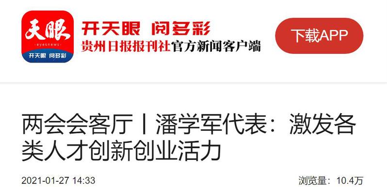 天眼(贵州日报当代融媒体集团新闻客户端):两会会客厅丨潘学军代表:激发各类人才创新创业活力