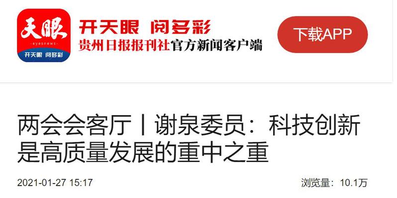 天眼(贵州日报当代融媒体集团新闻客户端):两会会客厅丨谢泉委员:科技创新是高质量发展的重中之重