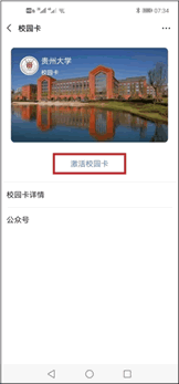 3. 领取成功后,可在微信-我-卡包里查看,找到必赢bwin线路检测中心校园卡后点击打开校园卡,点击激活校园卡。