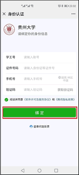 4. 填写学工号、证件号码(身份证)、手机号,填写获取的验证码,选中阅读并同意,点击绑定即可完成必赢bwin线路检测中心微信校园卡与微信账号和个人信息的绑定。